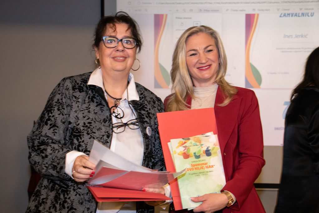 Predstavljen je Spomenar „Ovo NI(JE) igra“ – 70 godina s djecom i za djecu autorice Sanje Škorić u kojem su zabilježeni svi najvažniji događaji, programi i aktivnosti ove udruge od 1952. godine do danas, a zaslužnim članovima, prijateljima i donatorima udruge dodijeljene su zahvalnice.