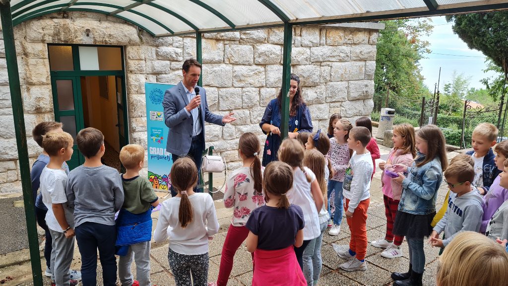 Dječjim javnim skupom  ispred “male škole” u Voloskom započelo je obilježavanje Dječjeg tjedna u Opatiji. Djecu, učenike od 1. do 3. razreda osnovne škole posjetili su gradonačelnik Fernando Kirigin i zamjenica Kristina Đukić, porazgovarali su i poigrali se s njima. Nakon što su ispisali svoje poruke na zamišljenom zidu i složili slagalice s porukama dječjeg tjedan, sve pod motom “Ljubav djeci prije svega”, djeca su s gradonačelnikom i zamjenicom odigrala igru “padobran”, ali i postavila mu brojna pitanja i izrazila želje. Želje su bile u rasponu od: da se oko škole obojaju ograde i klupice, posadi cvijeće, postave sprave za vježbanje u holu škole do želje jedne djevojčice “da nestane već jednom ta korona” koju su svi s radošću pozdravili. Isto tako, djecu je zanimalo kako je to biti gradonačelnik, što je gradonačelnik htio postati kada je bio mali, je li trenirao koji sport i što najradije radi kao prvi čovjek grada. Gradonačelnik im je spremno odgovorio na sve upite, a kao svoju najdražu aktivnost izdvojio je upravo ovakve susrete s najmlađim sugrađanima.