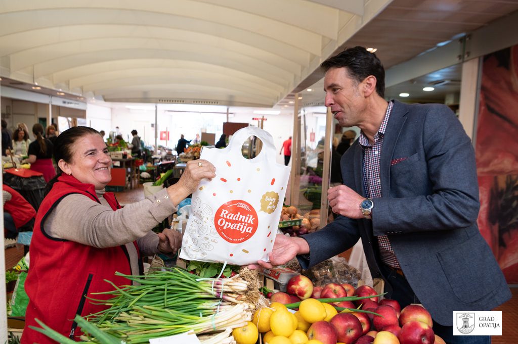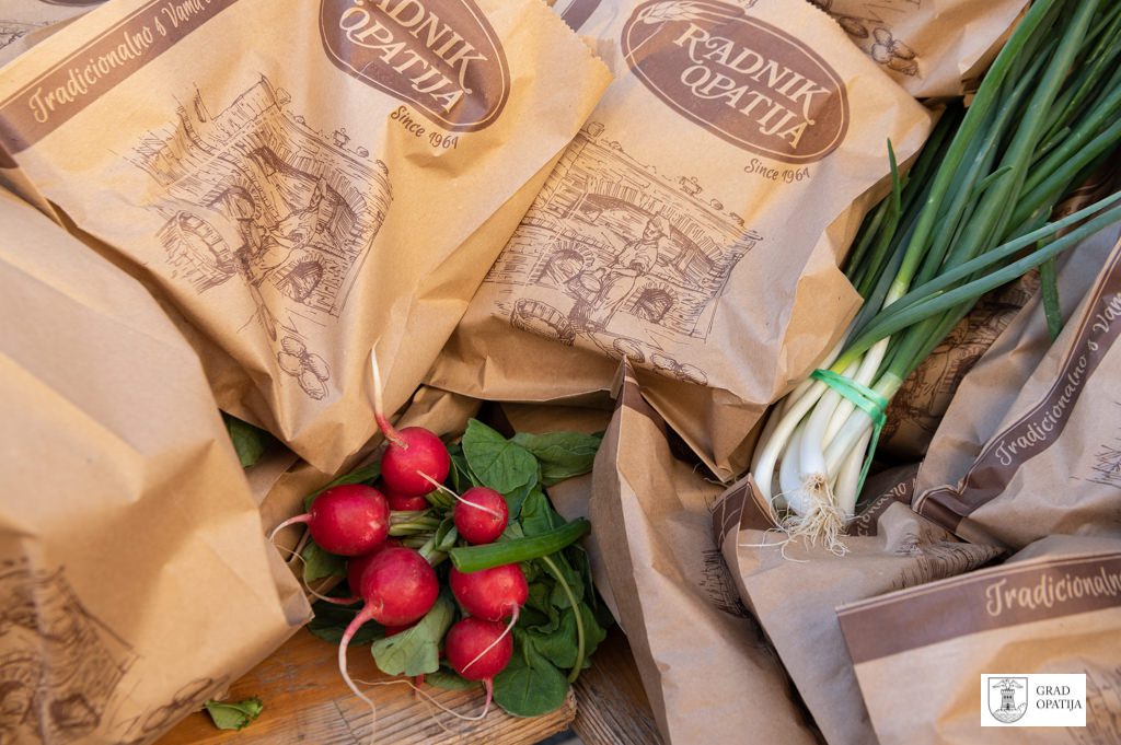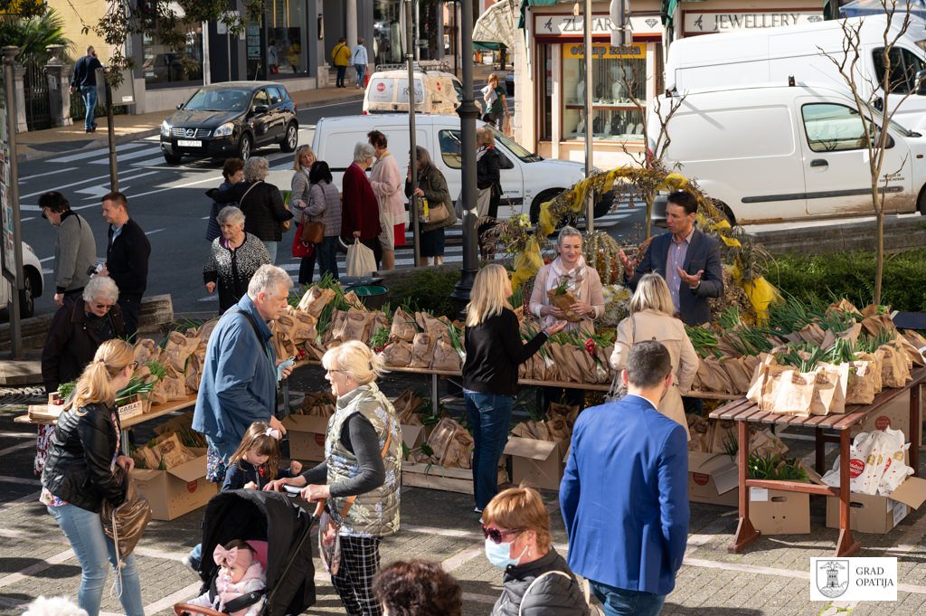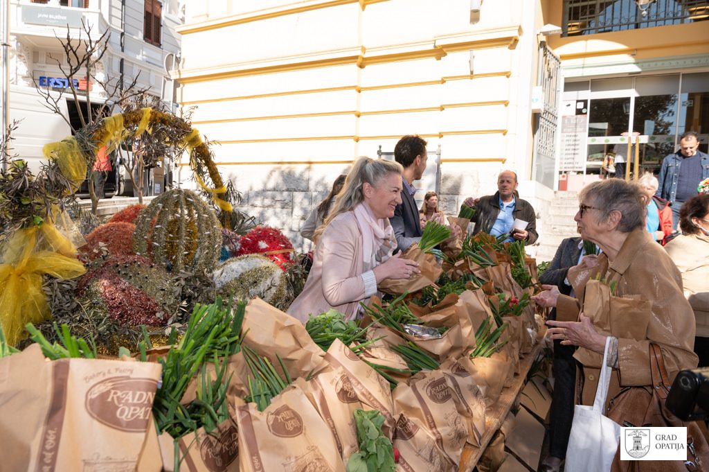 Uskrsni pokloni koji su se dijelili građanima kreirani su u suradnji s prodavačicama i prodavačima na Mrkatu te s „Radnikom“ Opatija, a u svakom se paketu našla mala pinca „Radnika“ te svežanj rotkvica i mladog luka. Akciji su se spremno odazvali vlasnici štandova na tržnici, ponajviše lokalnih OPG-ova koji u ponudi imaju domaće kvalitetne proizvode. Grad Opatija otkupio je od njih rotkvice i mladi luk te podijelio građanima popularne namirnice za blagdanski stol, uz čestitke za Uskrs i želje za uspješan nastavak godine i normalizaciju života nakon pandemije.