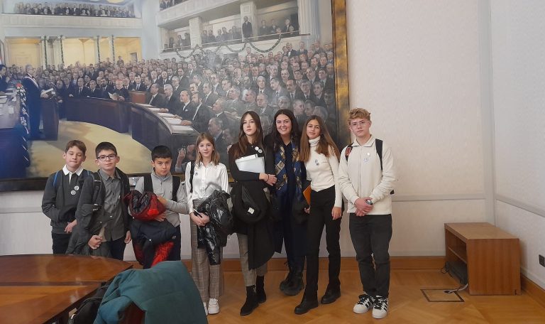 Vijećnici XIV. saziva DGV-a Grada Opatije Lana, David i Neva s mentoricama Sanjom Škorić i Antoniom Katić, zamjenicom gradonačelnika Grada Opatije Kristinom Đukić, profesoricom Natalijom