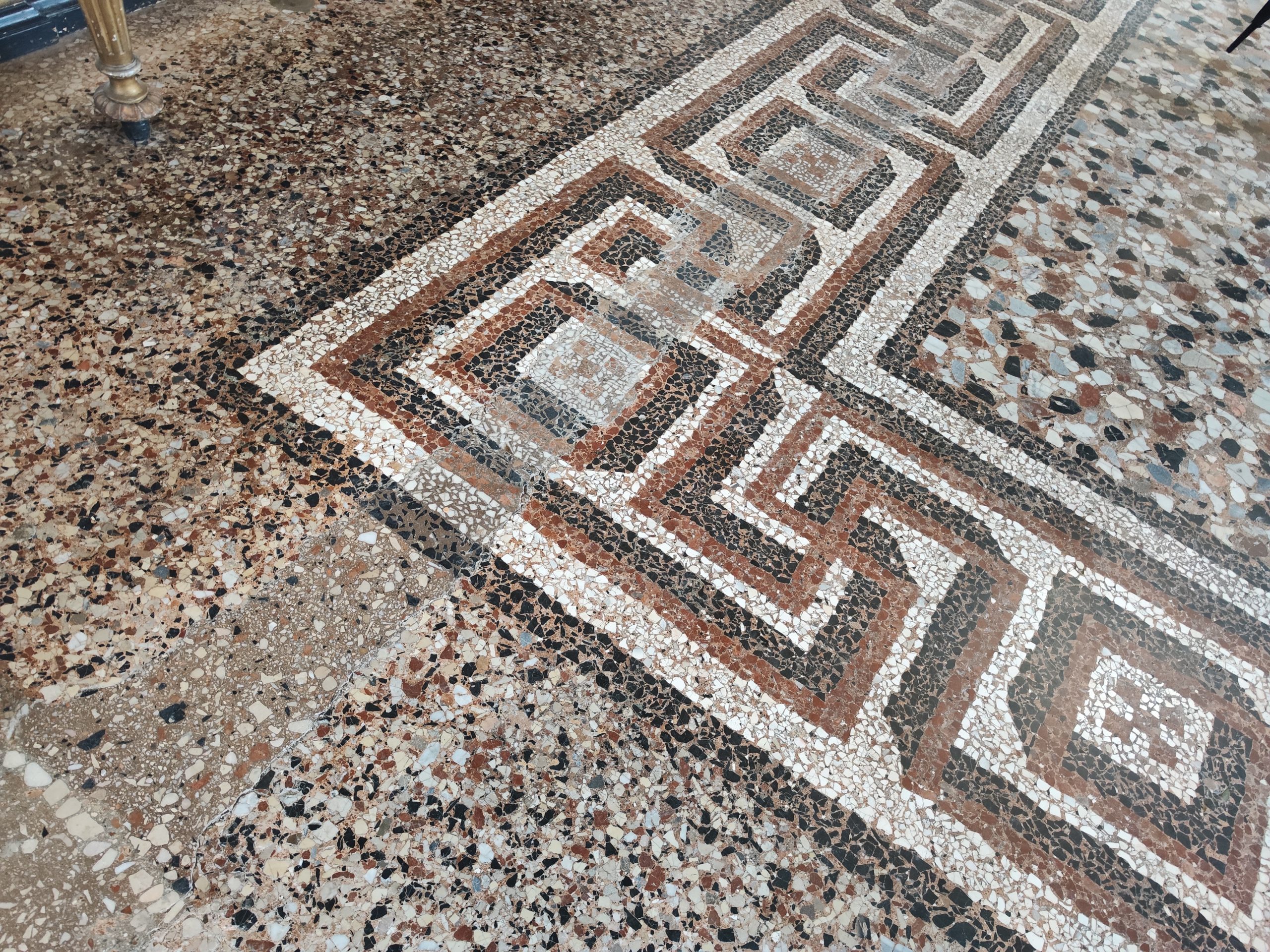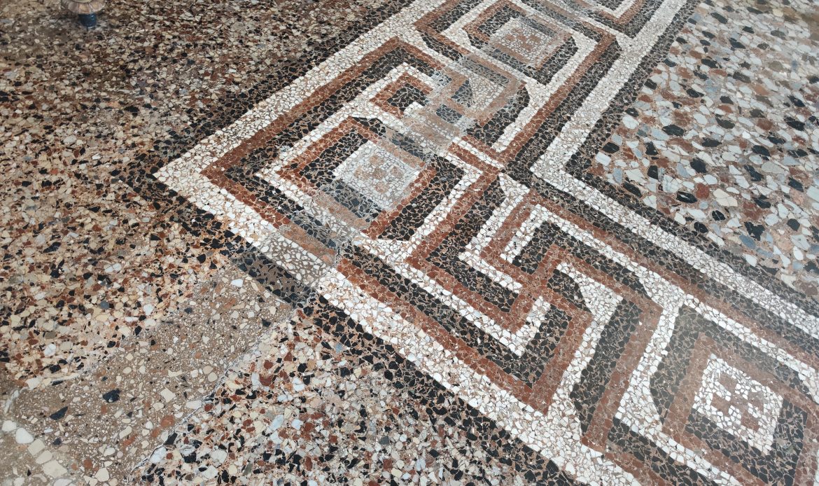 Podni mozaik u prizemlju Vile Angioline, koji prekriva cijeli središnji salon, već duže vrijeme pokazuje znakove oštećenja. Usred slijeganja podnice, mozaik je potonuo ispod izvorne nivelacije, a površina poda postala je valovita. Zbog toga se njegova očuvanost ubrzano smanjuje, što zahtijeva hitnu intervenciju kako bi se spriječilo daljnje propadanje.