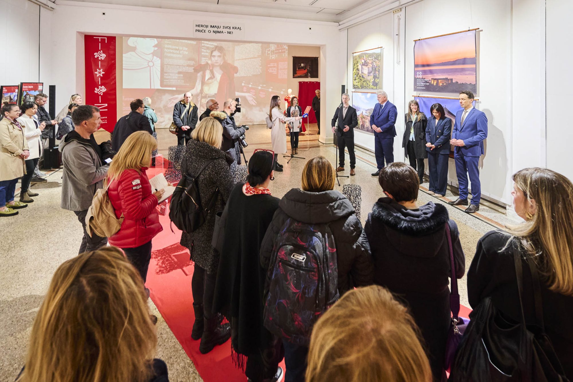 „Vodilja pri osmišljavanju Kulturno-turističke rute Putovima Frankopana bila je našu kulturnu baštinu staviti u funkciju turizma. Ruta je zamišljena da živi kroz turizam, da stvara gastronomske i enološke priče te da naši umjetnici stvaraju djela na temu Frankopana. Ponosni smo da sve ide dobro. Frankopani nisu bili na Liburniji, no ovom su izložbom stigli i na Liburniju“, kazao je Zlatko Komadina, župan Primorsko-goranske županije na otvorenju izložbe Upoznajmo Frankopane u Umjetničkom paviljonu Juraj Šporer koja je okosnica istoimene manifestacije.