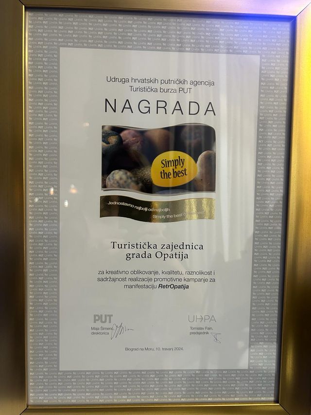 RetrOpatija, poznata i kao „trodnevni party stoljeća“, ponovno je dobila nagradu Simply the Best koju za inovativnost i kreativnost u turizmu već 14 godina dodjeljuju Udruga hrvatskih putničkih agencija i poslovno turistička burza PUT. Opatijska manifestacija istaknula se svojom kreativnom kampanjom provedenom na domaćem i inozemnim tržištima te je proglašena pobjednikom u kategoriji Propaganda.