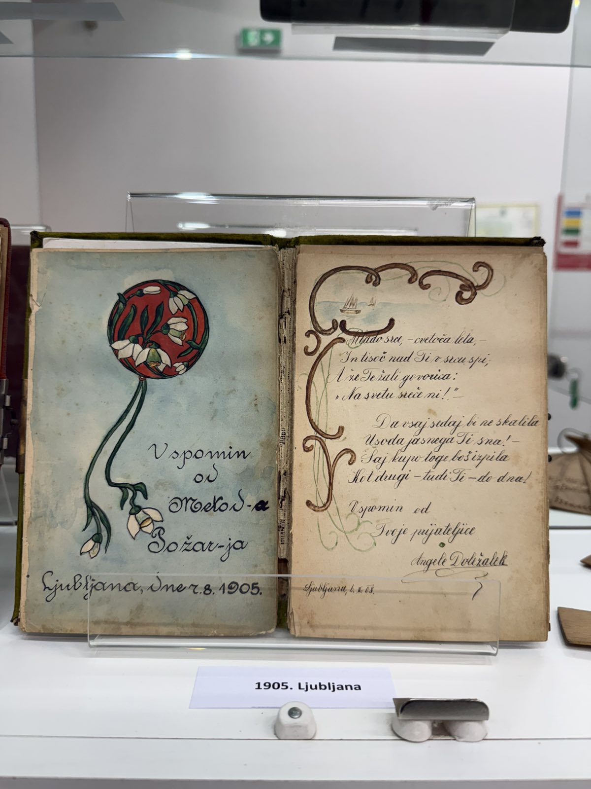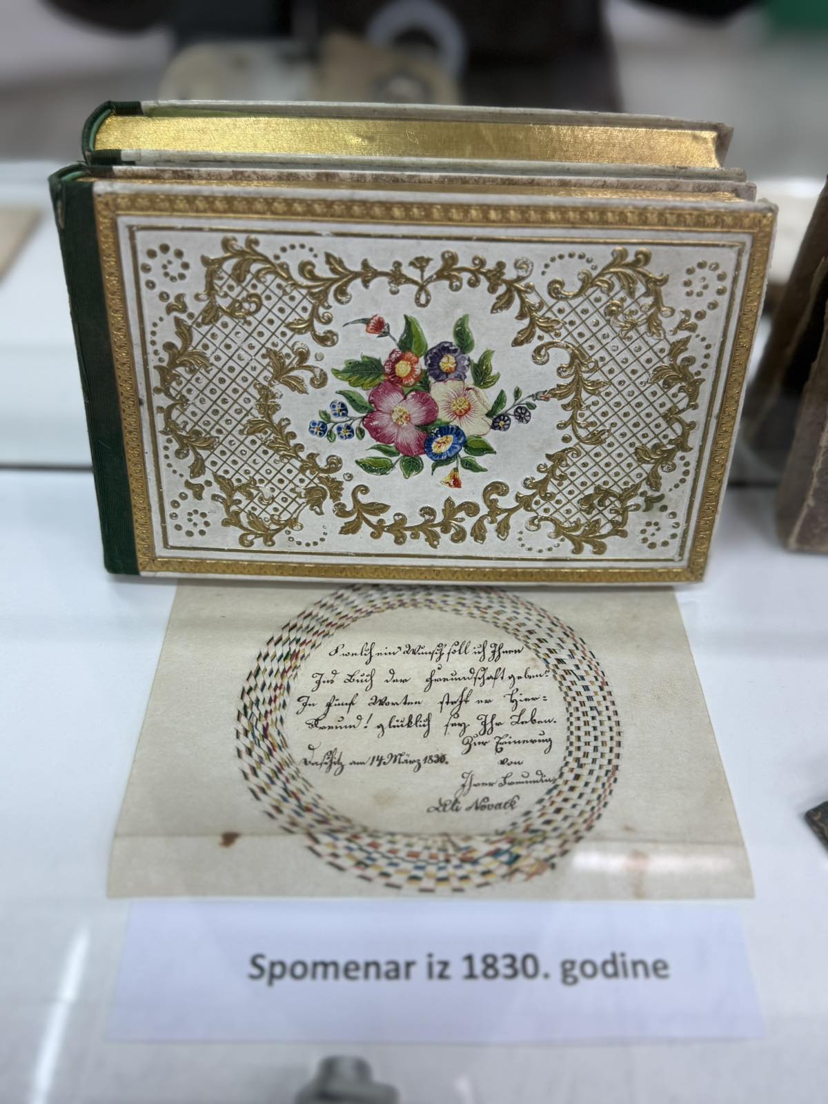 Supružnici Novaković ponosno ističu kako u zbirci imaju nekoliko spomenara iz 19. stoljeća, te kako su neki od primjeraka iz njihove kolekcije preživjeli tri rata. Od impresivnog broja od ukupno 900 spomenara s kojima raspolažu u svojoj kolekciji, na izložbi je izložen 81 spomenar, najstariji je iz 1814., a najmlađi iz 2020. godine. Ovdje se mogu pronaći i upisi i crteži nekih poznatih osoba, među kojima bi istaknuli onaj slikara Iva Kaline.