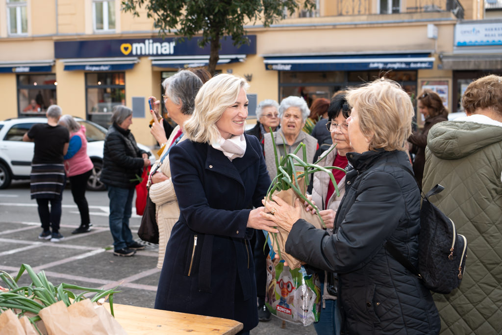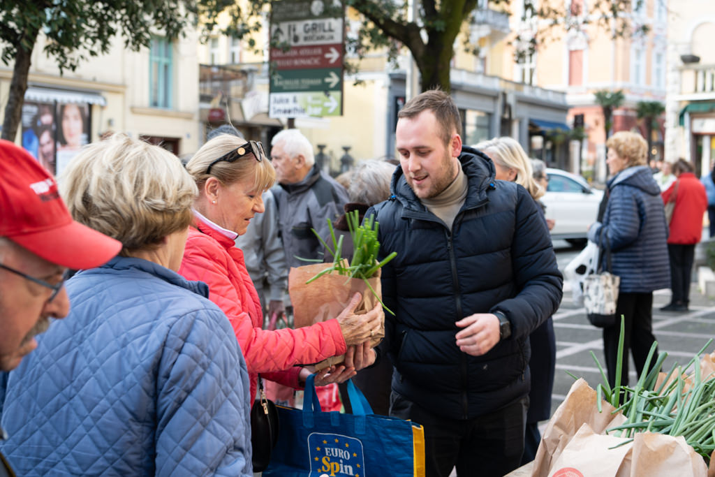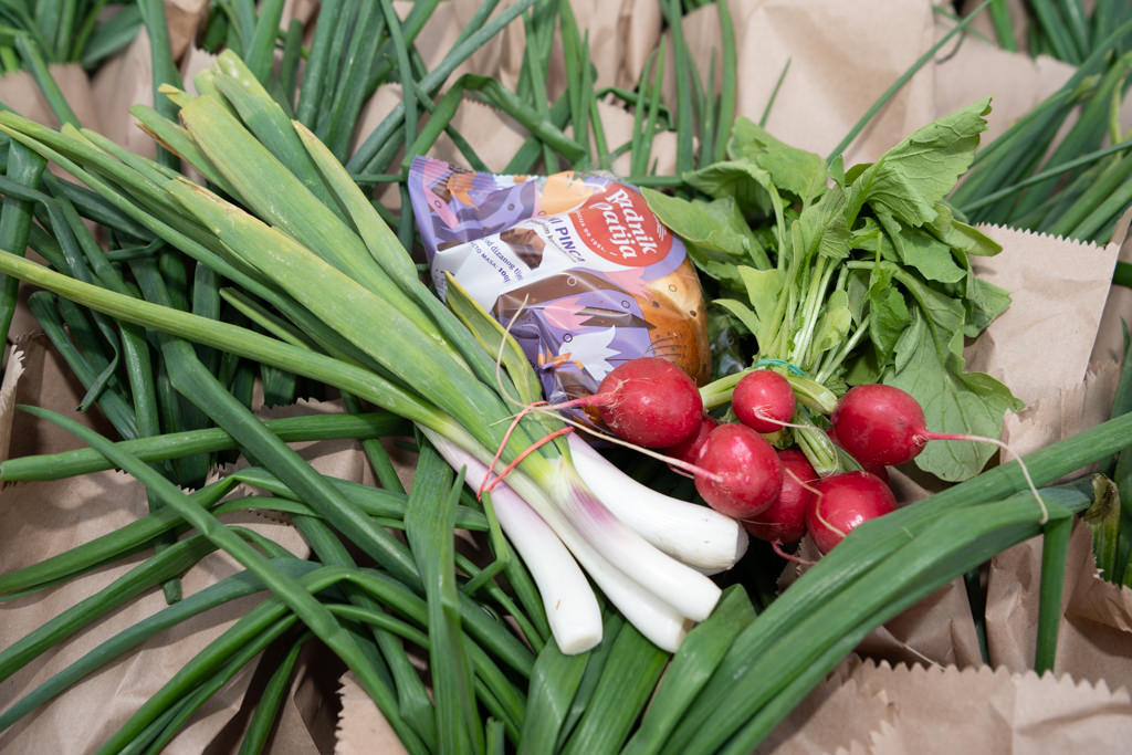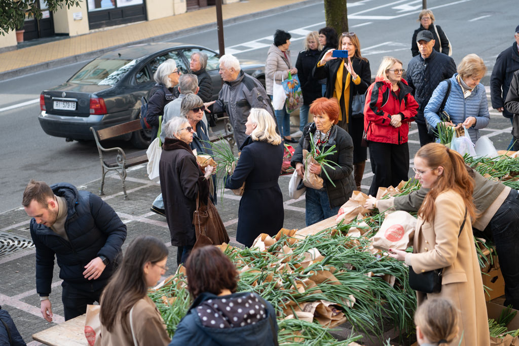 Uskrsni pokloni pripremljeni su u suradnji s prodavačima povrća na opatijskom Mrkatu te s „Radnikom“ Opatija, a u svakom se paketu našla mala pinca te svežanj rotkvica i mladog luka s lokalnih OPG-ova.