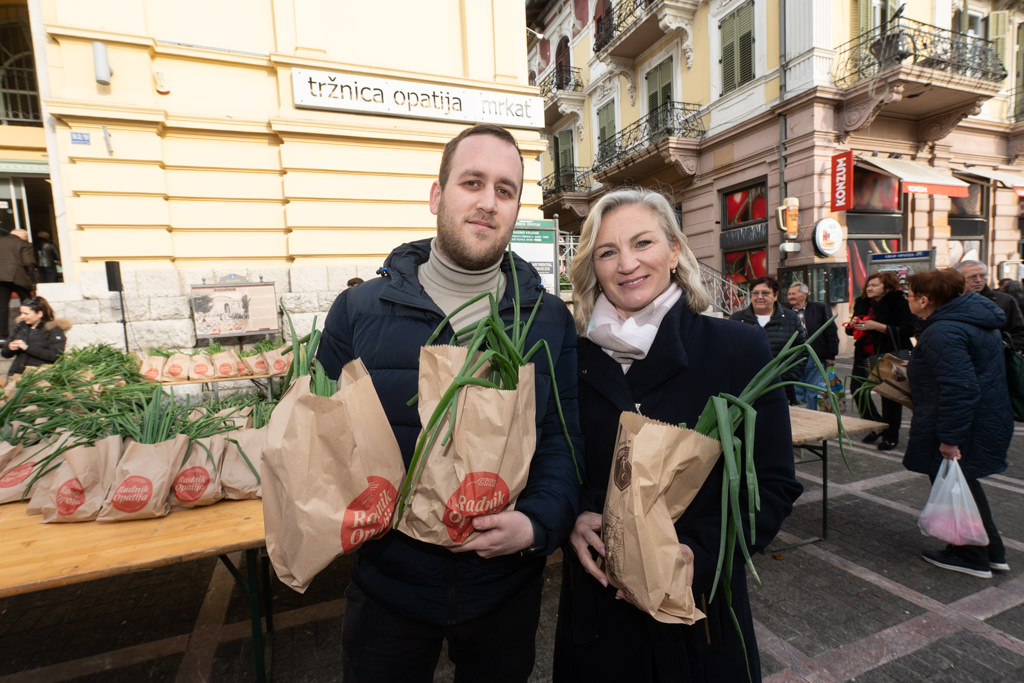 Zamjenica gradonačelnika Kristina Đukić i predsjednik Gradskoga vijeća Kristian Tončić su tradicionalno, na Veliki petak, ispred opatijske tržnice podijelili 500-tinjak prigodnih paketa građanima, uz čestitke za Uskrs i uskrsne blagdane.